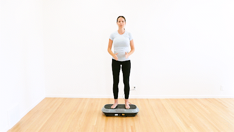 If someone is struggling with muscle fatigue or balance, it’s also okay to sit on the plate or sit in a chair and put your feet on the vibration plate.